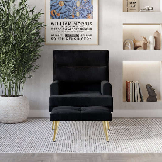 Castle Place Luxury Upholstered Velvet Accent Chair with Ottoman, Light Pink