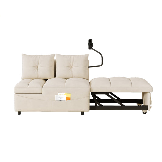 Aukfa 3-in-1 Convertible Sleeper Chair Bed, Pull-Out Sofa Bed with Adjustable Backrest, USB Ports & Swivel Phone Stand for Small Space, Gray