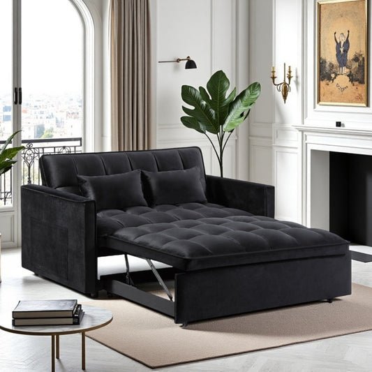 BSHTI 3 in 1 Pull-Out Sleeper Sofa Bed, Velvet Upholstery Fold Out Sleeper, 5-Position Reclining Back Loveseat, Movable Arm Cushion, Easy Assembly, Black