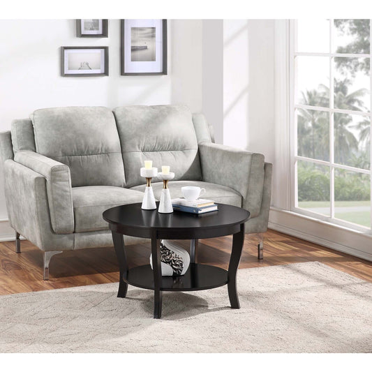 Convenience Concepts American Heritage Round Coffee Table with Shelf, Driftwood/White Wood Finish