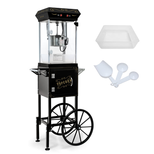 Aukfa Popcorn Machine with Cart - Vintage Popper Maker with 6oz Kettle, Oil Spoon and Scoop, Movie Theater Style, Red