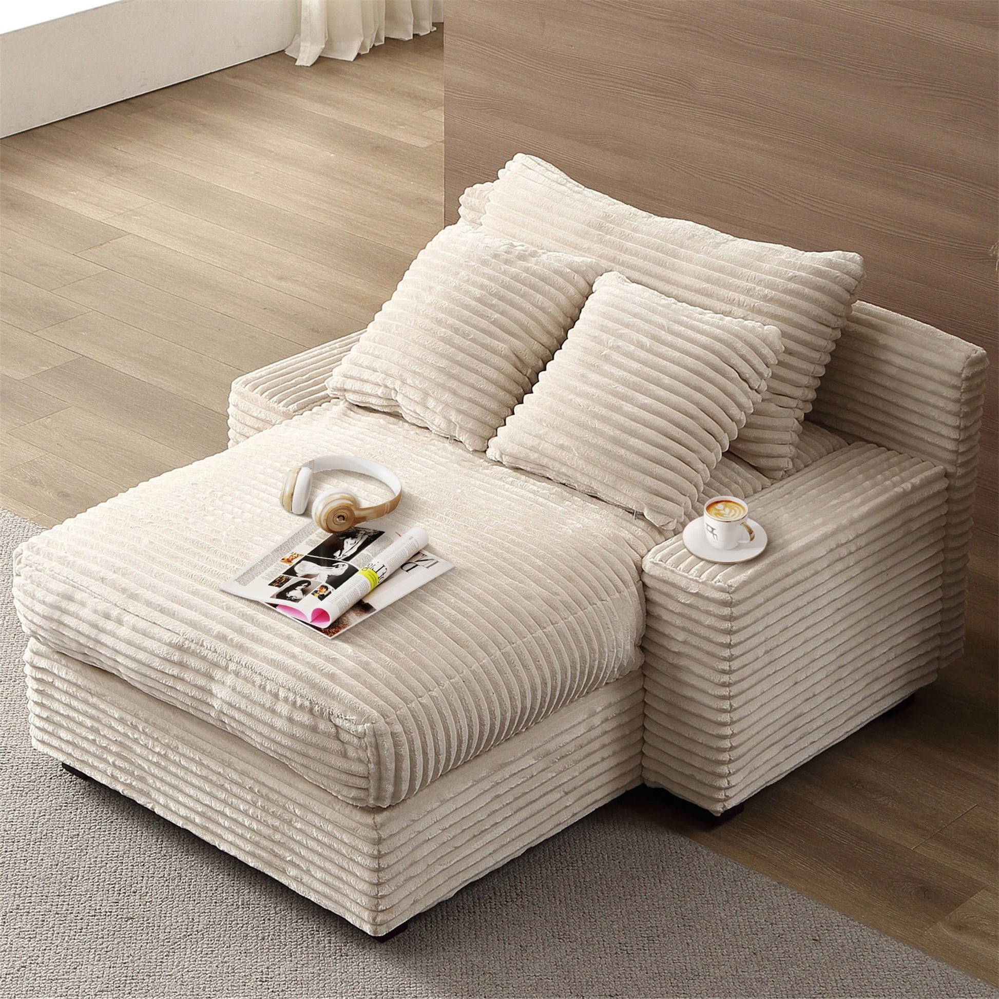 - PREMIUM MATERIALS & PILLOWS - The chaise lounge sofa is swathed in luxurious corduroy fabric and embraces a 9-inch seat cushion brimming with dense PP cotton for unparalleled comfort, soothing away the day's weariness. This chaise lounge sofa is equipped with 1 back pillow and 2 throw pillows, providing extra support and more comfort for your back and waist.