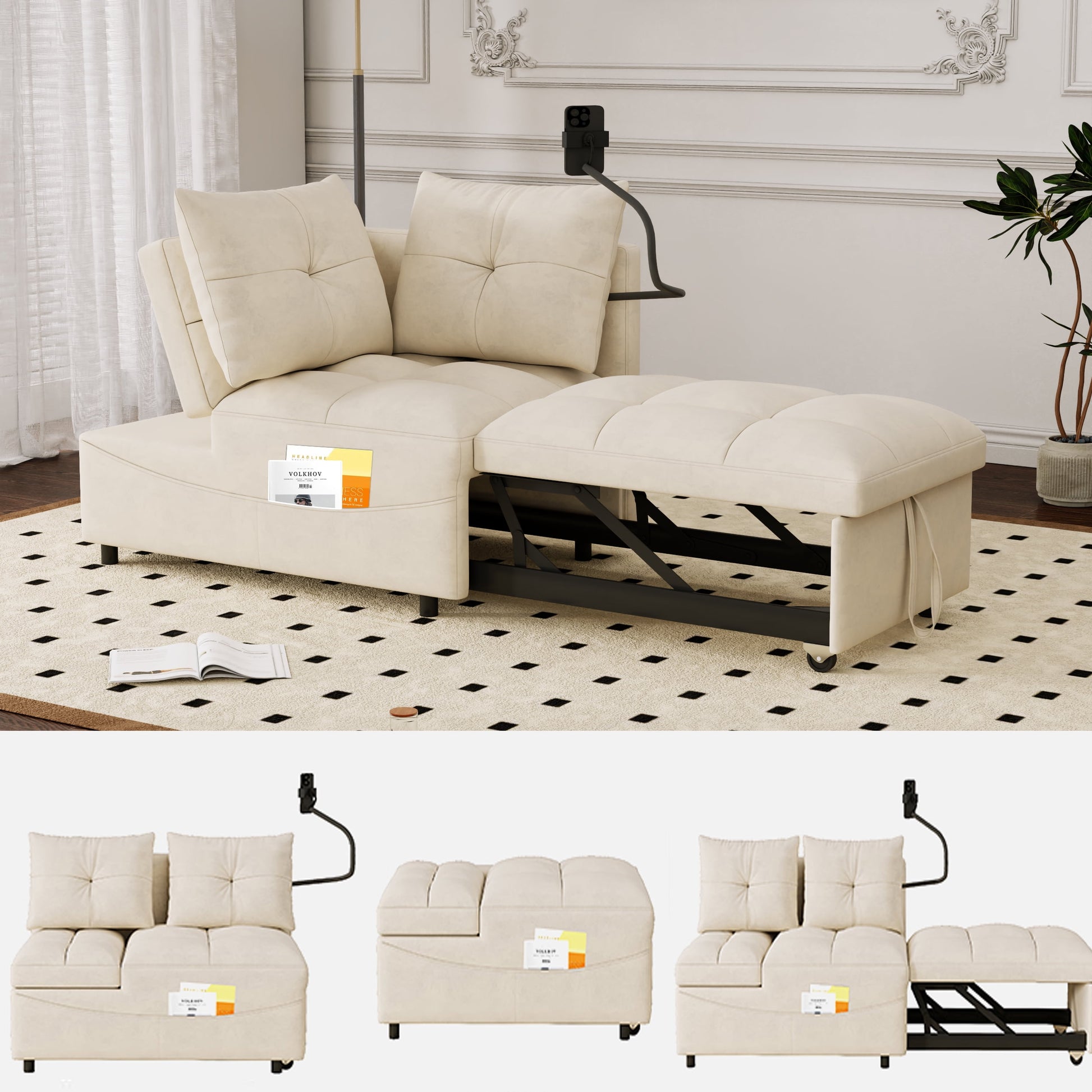 - 5-IN-1 MULTI-PURPOSE DESIGN – This convertible sofa chair easily transforms into a small couch, chaise lounge, sofa bed, guest bed, and ottoman, making it a perfect space-saving solution for apartments, dorms, studios, and offices.