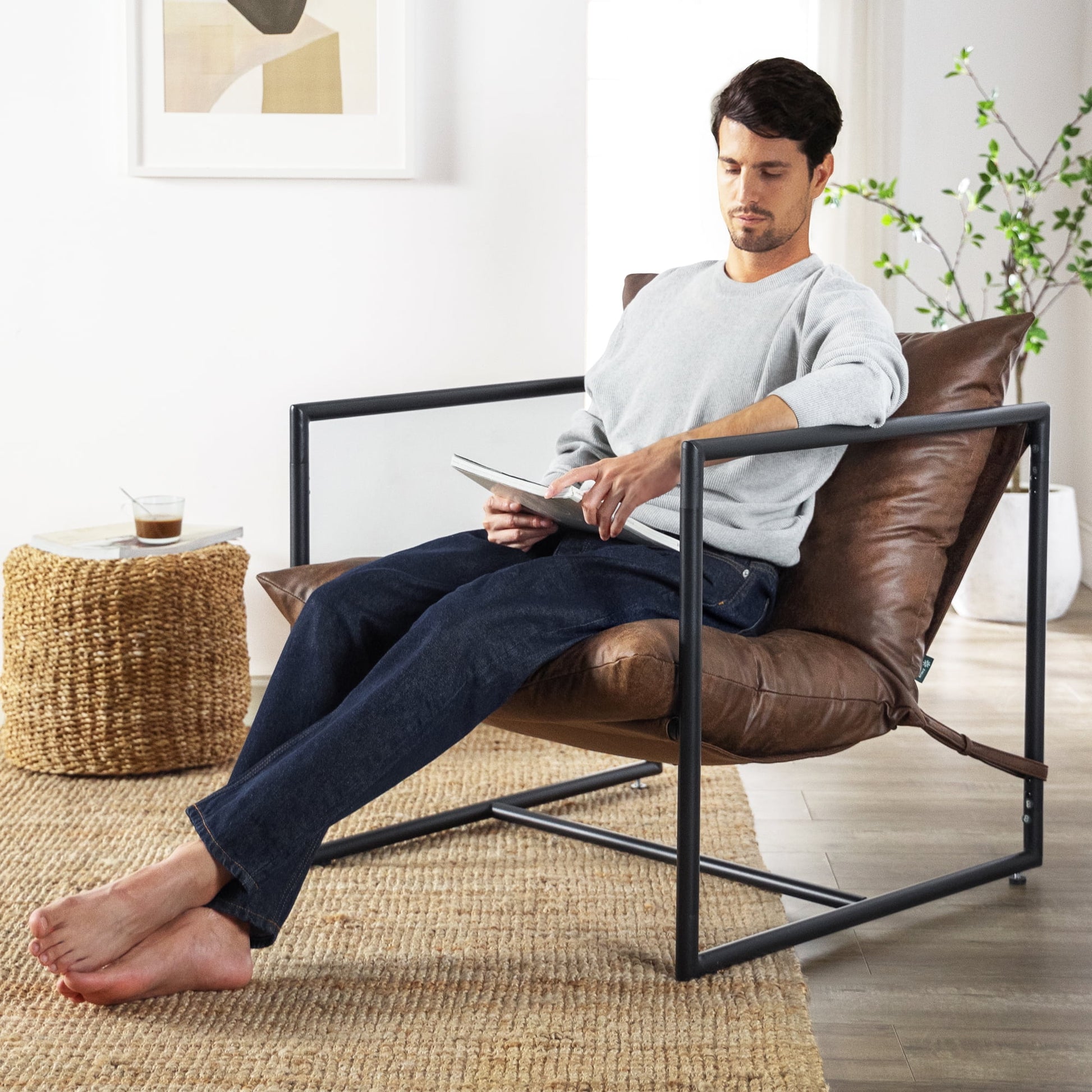 Mixing a cool, relaxed look with made-for-you comfort, the Aidan Sling Accent Chair is now back and better with a chic new design. With your choice of cocoa brown or slate grey, Aidan is now available with sleek and stylish vegan faux leather cushions—adding an elevated appeal to your living room, reading nook, or office space. Its upgraded new look is paired with all the same features that make Aidan so amazing—including its clean silhouette with modern styling, its sink-in comfort made for hours of lounging, and its thick steel frame sturdy enough to support up to 250 lbs. Just as easygoing as its overall vibe is its easy assembly, with all required parts, tools, and instructions needed for a quick 30-minute setup all packed and shipped to you in one convenient box. We’ve even got you covered with a worry-free 1-year warranty for added peace of mind.